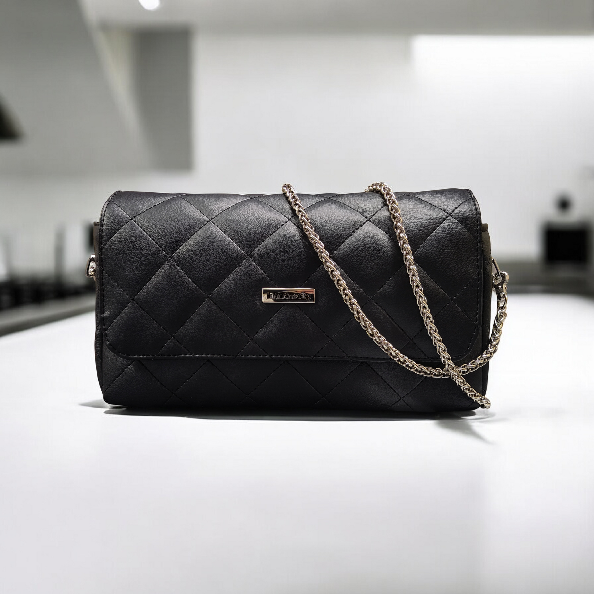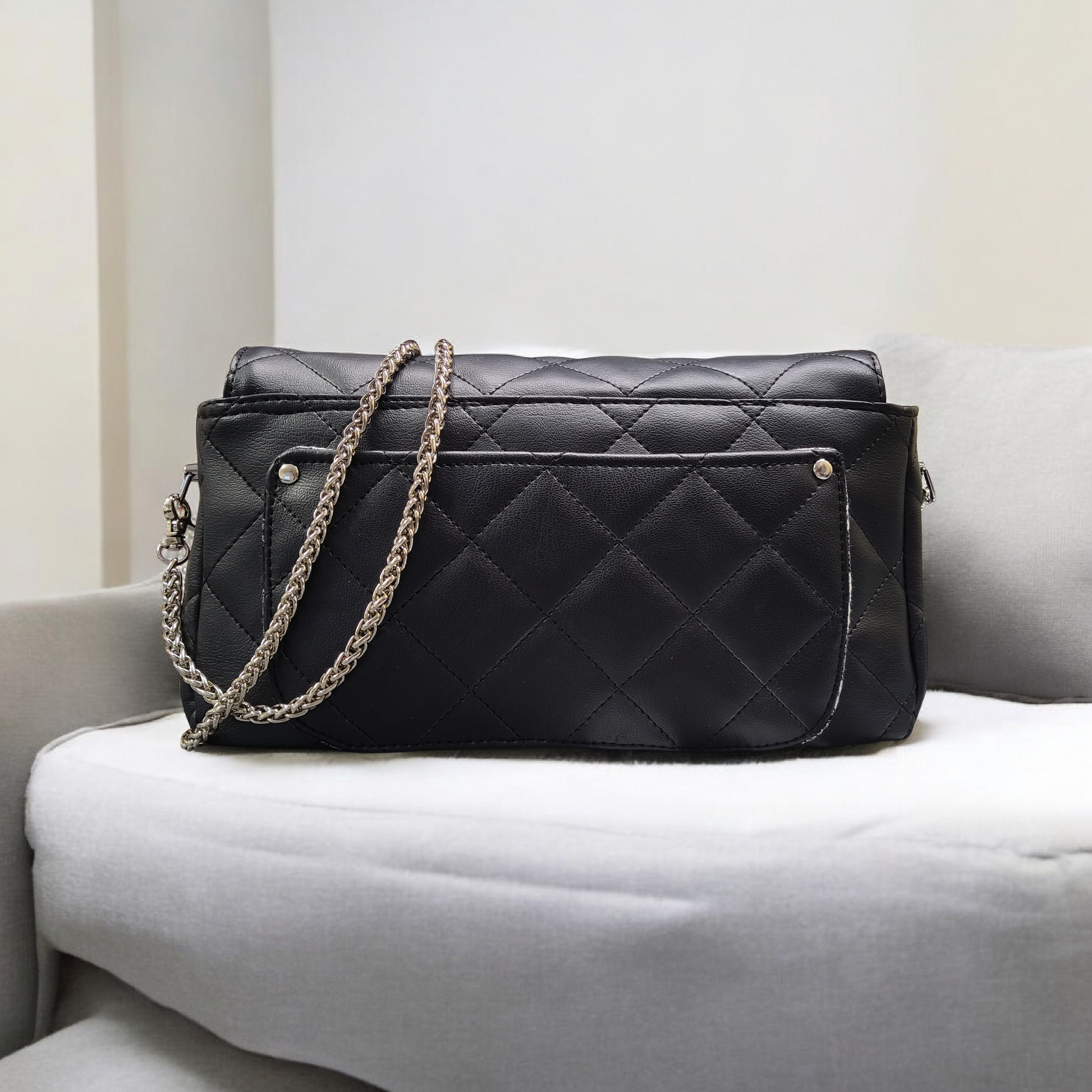 Introducing the Cha Cha! The custom quilted handbag is a must-have for any elegant and classy look. Its black & silver design adds a touch of sophistication to any outfit, while the quilted material offers a stylish texture. Elevate your style game with this versatile and timeless accessory.